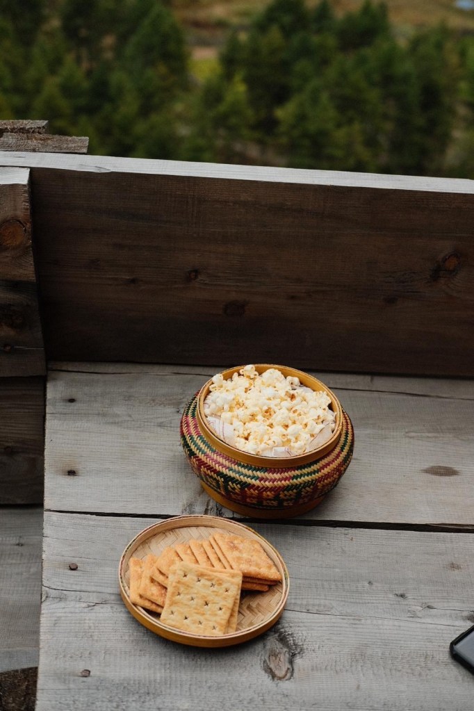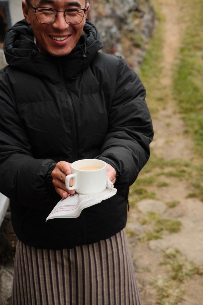On our way out of the hermitage, our marvellous driver Dorji was waiting for us with a Bhutanese milk tea made with black tea, ginger and cordyceps, along with popcorn and sweet-and-sour crackers, and we merrily recounted the tales of the day.
