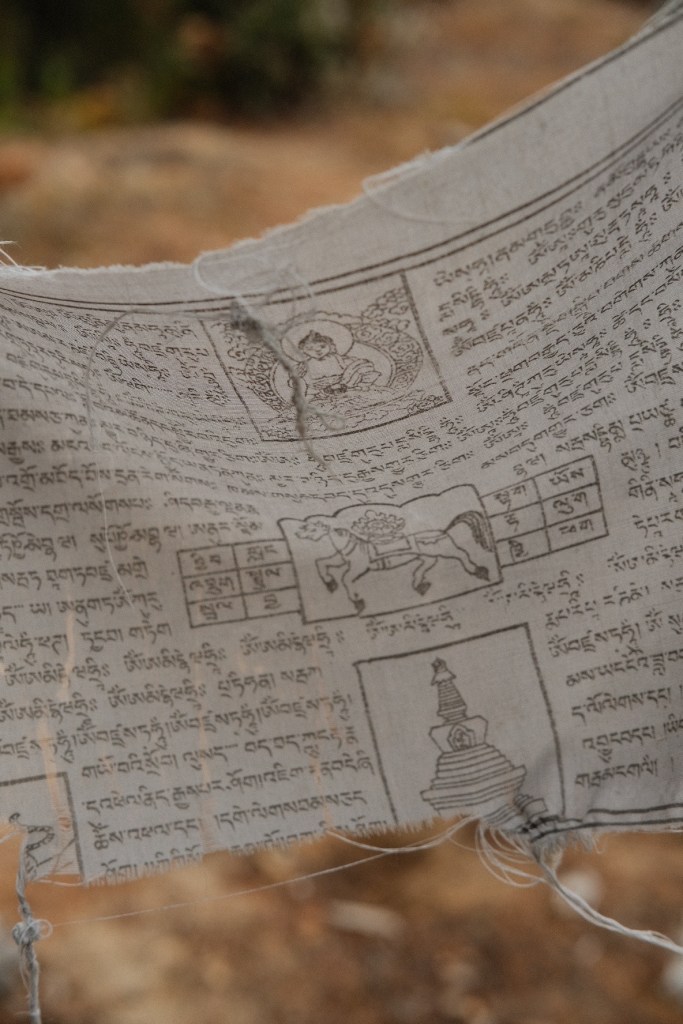This is what a cluster of Shidhar look likeWhen the wind blows through these flags, you can hear the low “thub thub thub” from hundreds of meters away. The sound is supposed to reach the realm of the dead, leading the deceased family member safely to a place of rebirth. This is what the writing on the Shidhar looks like