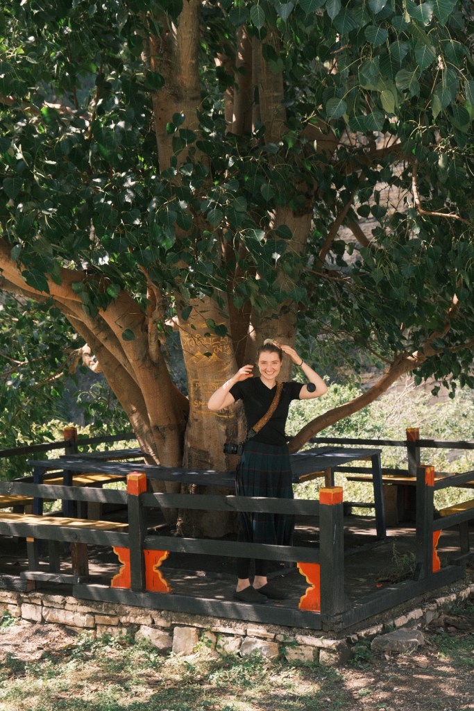 This is what the super-stupa looked like from afarAnd this is what it looked like from up closeThis is what fee looked like near the super-stupaAnd this is what fees favourite place to rest looks like (this was a magnificent tree)More treeFee often looks like thisThese prayer flags are called Lungdhar, meaning ‘wind horse’, they are coloured for the elements and printed with the image of a horse and the mantra of compassion — Om Mani Pei Mei HunThis is what we looked like