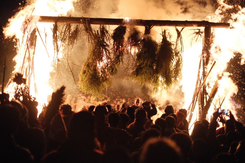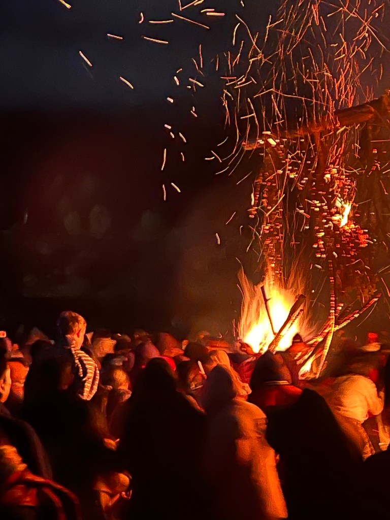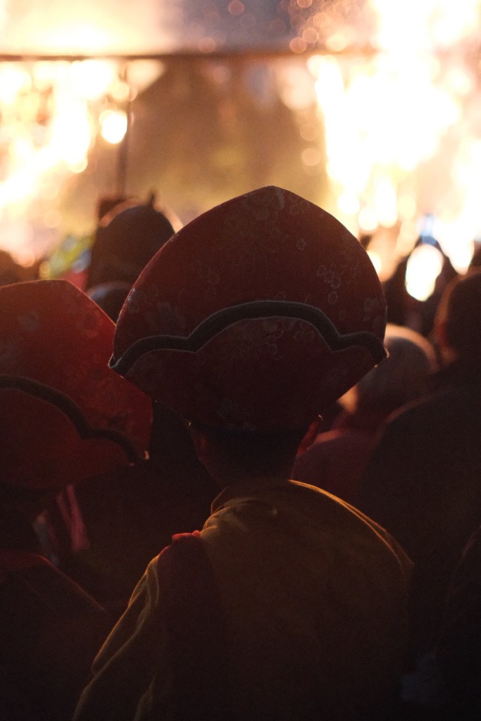 There was a lot of shuffling, then trumpets and drums began a fast melody and the fire gate was lit.