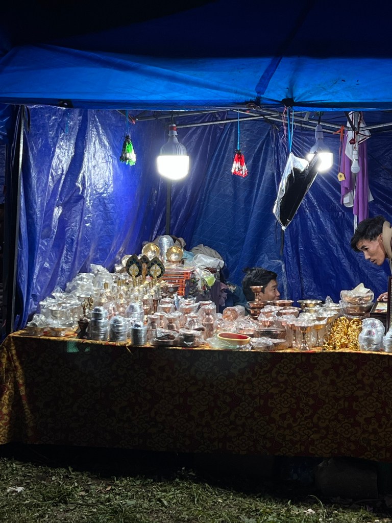 There were tents with restaurants, open fires and benches to sit and eat, there were stalls that sold goods of every kind (clothes, religious items, jewellery, kitchen appliances, books, woven cloth and yathra, and so much more).