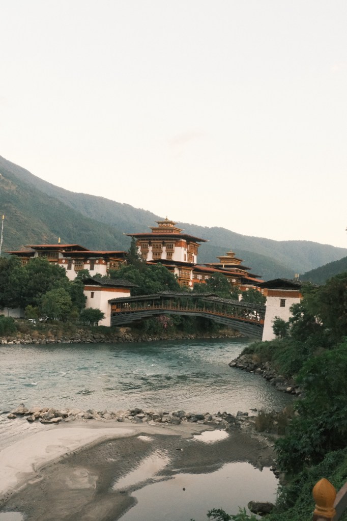 The Dzong is located between the Pho Chhu (Male) and Mo Chhu (Female) river in the Punakha valley, and sits atop a strip of land that looks like a river island — the sound of the rivers is a constant companion as we walked around the Dzong.