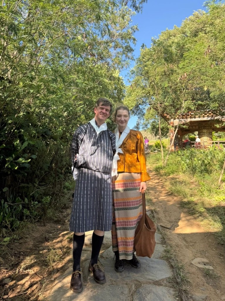 For this special occasion, we were dressed in traditional bhutanese clothes again – Fee wearing a Kira and renaud a Gho.
